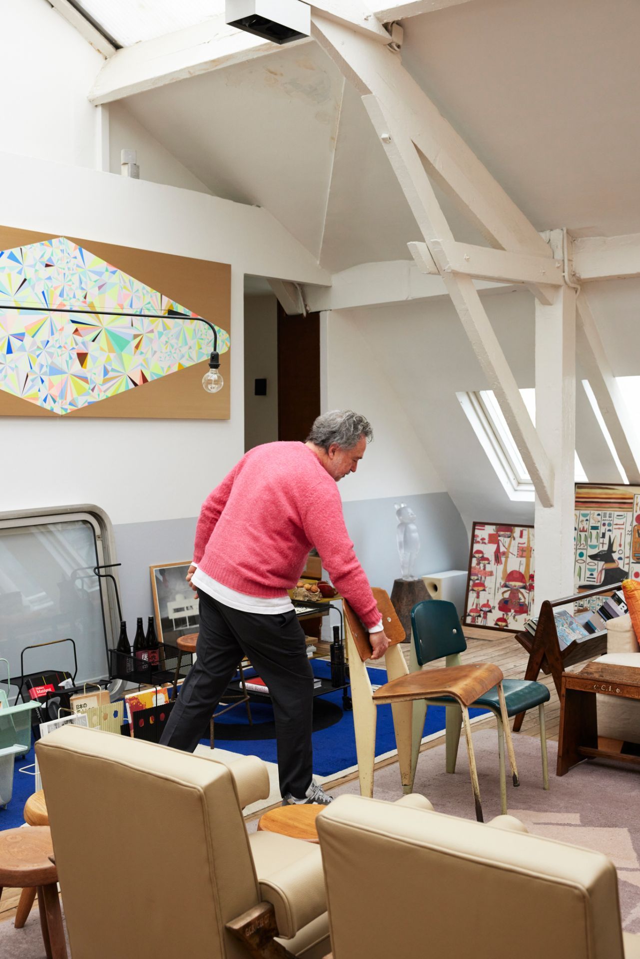 루카와 시몬이 어렸을 때, 저는 아이들이 이 공간에서 노는 모습을 보는 것을 참 좋아했어요. 어린이용 세 발 자전거를 타고 가구들 사이를 여기저기 돌아다니고, 스탠다드 체어 2개를 양 편에 두고 골대 삼아 축구를 하고, 때로는 커다란 샤를로트 페리앙 Charlotte Perriand의 테이블 위에 네트를 설치해서 탁구를 치기도 했죠. 물론 아이들이 거침 없이 다뤄도 절대 망가지거나 부서지지 않는 튼튼한 가구들이기에 가능했다고 봐요. 이렇게 루카와 시몬은 우리 가구들을 이용해 자기들끼리 재미있는 시간을 보내는 데 매우 창의적이고 열정적이었어요. 다만 이제 두 소년은 자신들이 훌륭하고 희귀한 가구를 갖춘 멋진 곳에서 살고 있다는 것을 이해할 만큼 자랐고, 비로소 독립도 했죠.